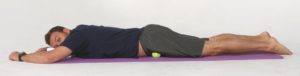 Because the psoas muscles of the hip flexor group originate on the lumbar spine you can also place the tennis ball beside your bellybutton to help loosen up these muscles specifically. Move the tennis ball to each sore spot you find and hold it there for 10 to 30 seconds. Do each side of the body for a total of 2 to 3 minutes at least once a day.